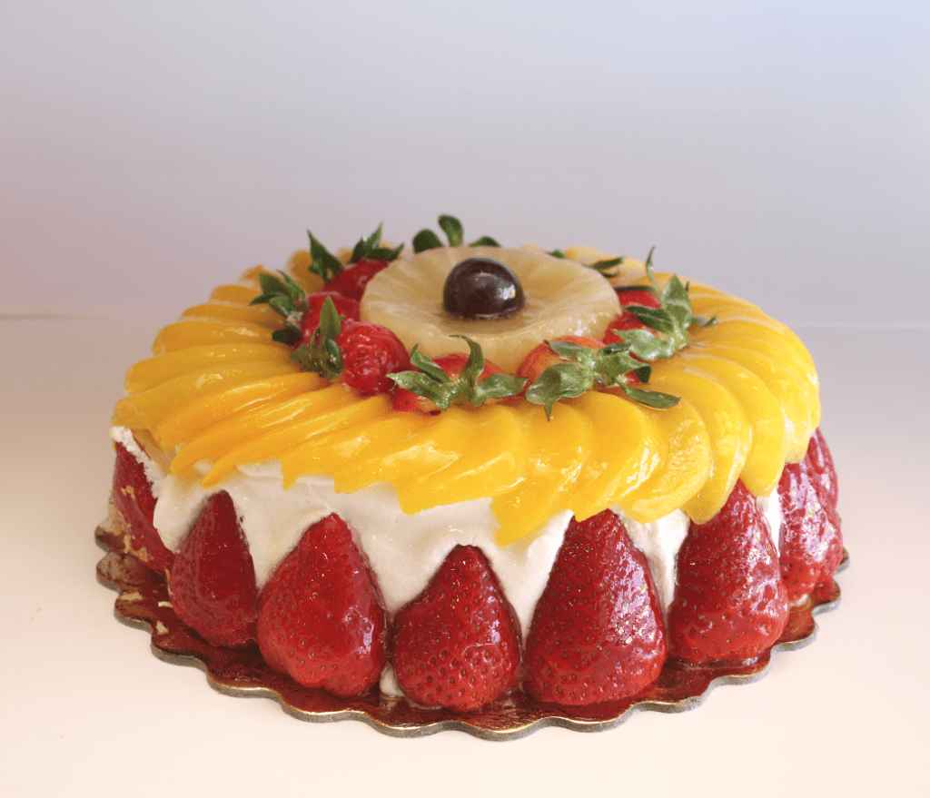 Massa de pão de ló húmida e fofa, com recheio de massa folhada e creme de ovo e cobertura de chantilly.
